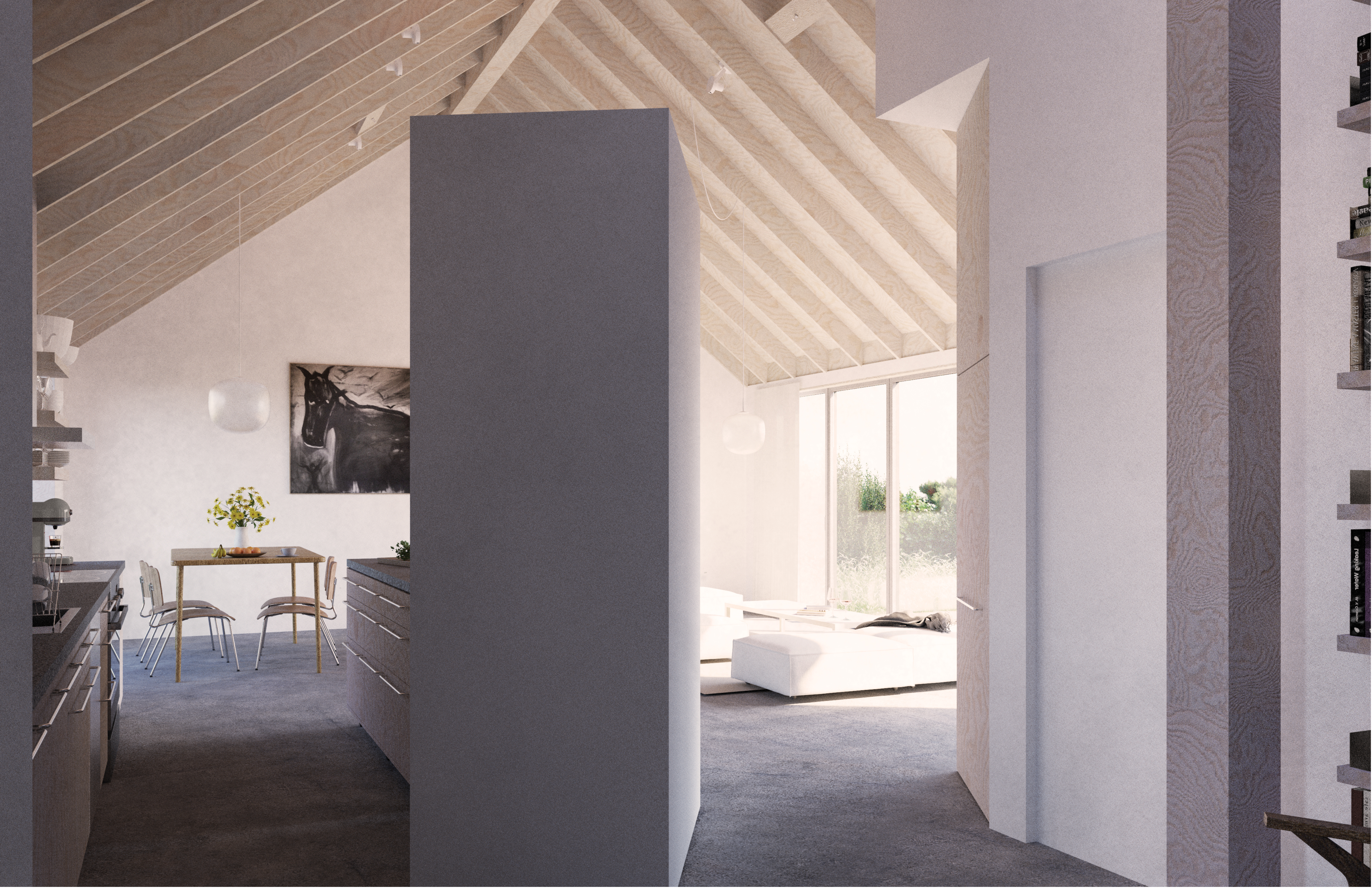 This live-work studio inhabits a renovated candy factory. It is compromised of one big open space for living and a small nook for sleeping. This nook of sleeping is formed and unformed by a configurable object on wheels.